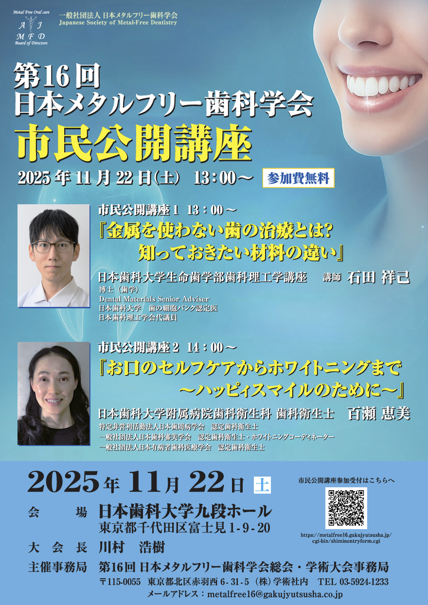 今年6月23日『メタルフリー修復と歯周病』のタイトルで