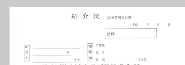 他の医療機関からの紹介状をお持ちの方は、受付でご提示下さい。 またその他の歯科医院から検査結果、レントゲンデータ等の資料をお持ちの場合には合わせてご持参下さい。